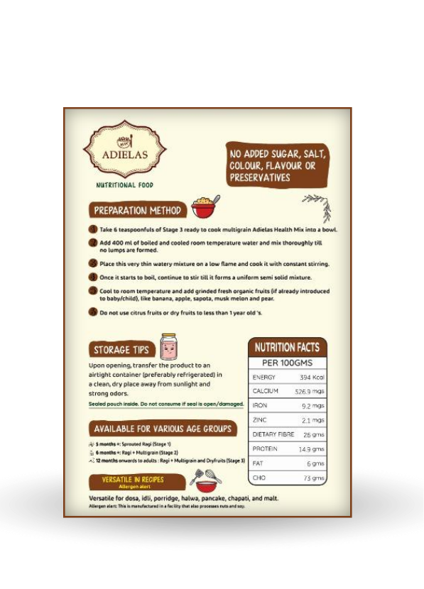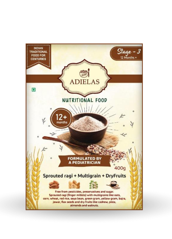 Stage 2, 12 Months+   – Sprouted Ragi with Multigrain & Dry fruits.